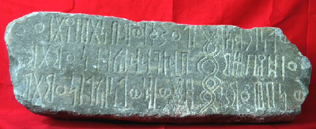 Stone inscription, h. 24, w. 69, th. 22. Sabaic Musnad with an incised decoration with two intertwined snakes.Aden, The National Museum, NAM 1569.