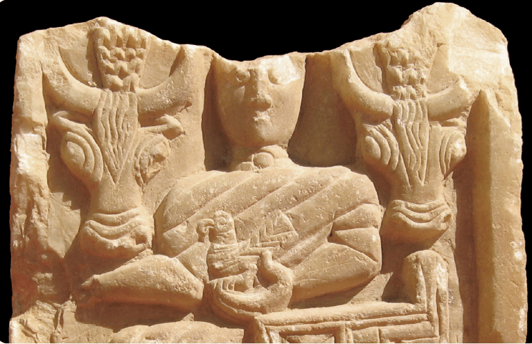 Part of a South Arabian panel depicting an ibex and three oryx. The ibex was a sacred animal in Arabia. Ibex and gazelles were associated with the worship of Attar, whose veneration extended from Mesopotamia to Ethiopia.