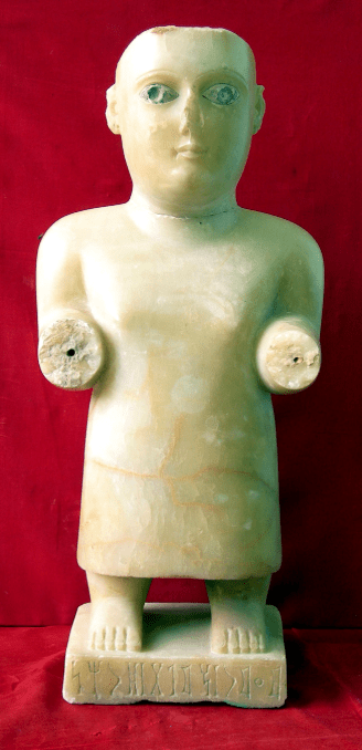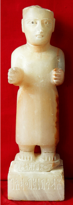 ◄ Sculpture of human figure; Alabaster, h. 31, w. 9.4, th.7.5. Aden, The National Museum, NAM 1373=AM 60.1127.