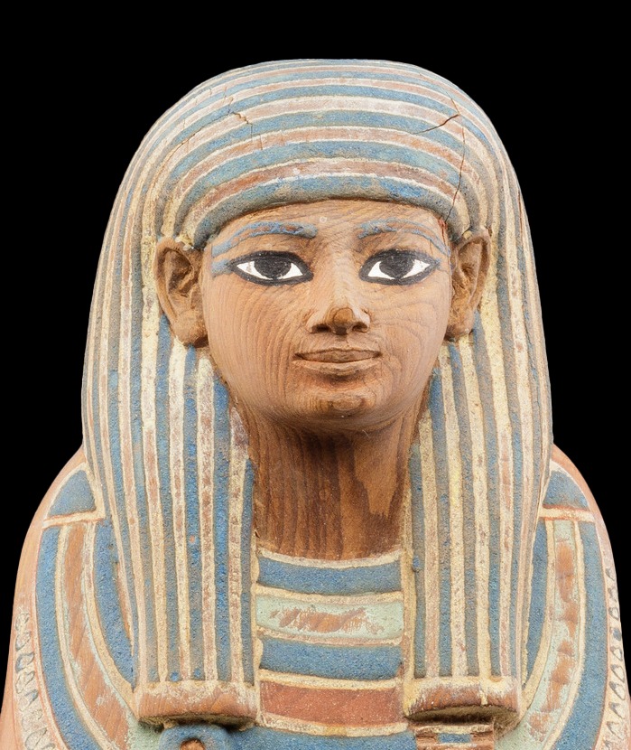 Mummy mask with inlaid eyes, of a High Official wearing the “Gold of Honour.”