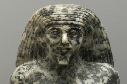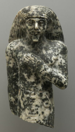 Statue of standing man; diorite – granodiorite 9.1 cm; Width: 4.7 cm; Depth: 4 cm. Period of Khakheperre Sesostris II. Place of origin: Giza. © Louvre Museum: E 22754; Curtis No. 255.