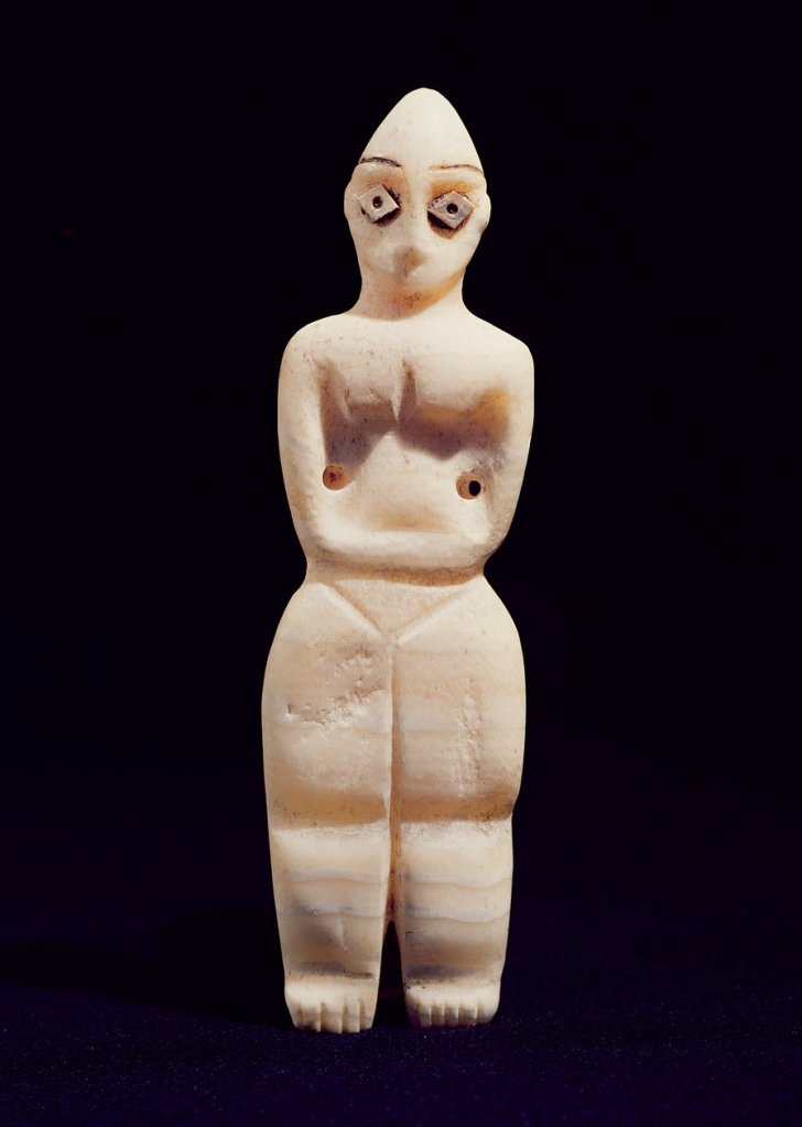 Statuette of a woman, early 4th millennium BC.; alabaster. 6000-3700 BC· Found in Tell es-sawwan, Samarra.