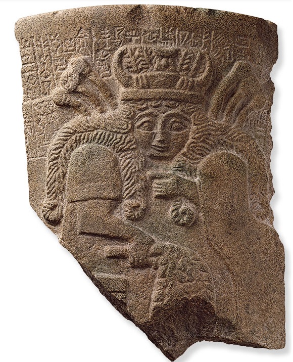 Fragment of a vessel with frontal image of goddess; Basalt.