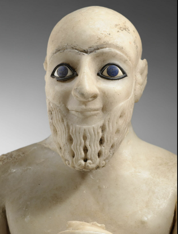 Nu-banda Ebih-Il (-2500 / -2340 -Archaic Dynastic IIIB). From Mari temple of Ishtar (alabaster, shell, lapis lazuli, bitumen; hight: 52.5 cm; width: 20.6 cm; thickness: 30 cm; weight: 32.5 kg). Date of discoveryJanuary 23, 1934.
