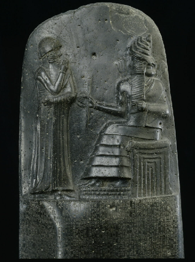 Code of Hammurabi (-1792 / -1750 – 1st dynasty of Babylon), basalt; height: 225 cm; width: 79 cm; thickness: 47 cm. Place of discovery: Susa.